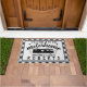 Add your family name to this chic rustic farmhouse doormat with a faux burlap and grey buffalo plaid look. Perfect for RVers, this mat includes black silhouettes of a motorhome and hearts, plus the words "Welcome to Our Motorhome" and two lines of personalised text. This pretty doormat for avid travelers has a cute, country style. Use the easy template to add your text. This design works best on the larger size. To order the smaller size, visit here: https://www.zazzle.com/motorhome_rv_rustic_gray_plaid_farmhouse_custom_doormat-256709957144158841