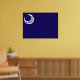 This design features the Moultrie Flag (also known as the Liberty Flag), which was a key flag flown in the American Revolutionary War. The Liberty flag was designed in 1775 by Colonel William Moultrie, in order to prepare for war with Great Britain. The symbol in the top-left corner is a crescent containing the word "LIBERTY".