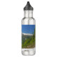 Enjoy a magnificent landscape from the Cascade Mountains with this water bottle. In this scenic photo, the snow-covered peak of Mount Baker rises above an alpine landscape that includes a small lake and evergreen trees. The words "Mount Baker Washington" appear in the blue sky above the summit.