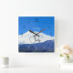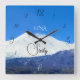 A striking wall clock featuring Mount Etna in Sicily, captured beneath a blanket of snow as soft smoke rises into a clear blue sky.