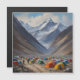 Immerse yourself in the awe-inspiring beauty of Mount Everest Base Camp in Nepal through an exquisite Impressionist oil painting. The perspective is from a secluded spot at the base camp, offering a unique view of the majestic mountains of the Himalayas. The style is chraacterised by bold brushstrokes and a vibrant colour palette that captures the energy and majesty of the natural wonder. The lighting is soft and diffused, with the sun casting a warm glow on the snow-covered peaks. The colour palette is a captivating fusion of cool blues, warm yellows, and earthy tones.
