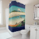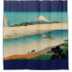 Customisable shower curtain with traditional japanese print by Katsushika Hokusai. Print shows a man poling a boat across the Tama River and a man leading a packhorse along the shore, with view of Mount Fuji in the distance. From the series: 36 views of Mount Fuji.