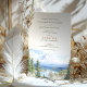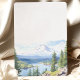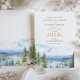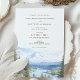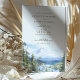 This stunning wedding invitation features a hand-painted watercolor landscape of Mount Hood, Oregon, showcasing serene natural beauty. The artwork on both sides displays a breathtaking mountain view, lush evergreen forests, and a calm lake framed by gentle rocky terrain. The soft, muted colour palette includes hues of sky blue, evergreen, forest green, earthy browns, and snow-white peaks, creating a peaceful and elegant outdoor aesthetic. The minimalist text layout complements the natural design, adding a touch of rustic charm perfect for nature-loving couples. Ideal for weddings in outdoor or mountain settings, this invitation blends scenic beauty with classic typography, making it a memorable piece for your special day.