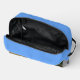 Zippered dopp kit toiletry bag that features the scenic, landscape photo image of a snow capped Mount Rainier and evergreen forest lakeshore along with a solid, light blue top with grey sides. Perfect accessory bag for your toiletries for on-the-go travel!