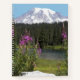 Standard size, spiral bound notebook for home, school, or office that features a scenic, landscape photo image of majestic, snow capped Mount Rainier and pink Fireweed wildflowers along a lakeshore in the Pacific Northwest. Image is printed on both sides of notebook. Select your notebook style options.