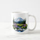 This ceramic coffee mug is shown in a beautiful watercolor art print of Mount Rainier.