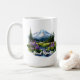 This ceramic coffee mug is shown in a beautiful watercolor art print of Mount Rainier.