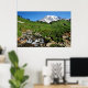 Mount Rainier, waterfall, snow-covered Poster
