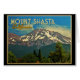 An utterly gorgeous scene, this vintage look design of Mount Shasta National Park in California features the snow-peaked mountain range with an expanse of forest below.