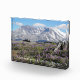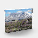 Acrylic photo block for display that features a photo image of the snow covered Mount St Helens Volcano and purple wildflowers within the national monument, located in southwestern Washington State. Makes a great, travel souvenir and gift!