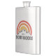 The product is a good size and came exactly as it was pictured. The lid is not attached to the flask, which could be dangerous on drunken nights... The print came out surprisingly well and looks very sharp. Would definitely recommend.
