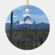 A beautiful sunny day in late September, 2017. View of Mount Washington framed by trees & beautiful blue sky. Snow covering the top & below are what remained of a recent forest fire, but there is already green growing back!