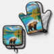 Mountain Bear: Lake Reflection Art Oven Mitt & Pot Holder Set