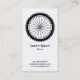 A clear stylish and attractive business card template with a mountain bike wheel motif. Main company details on the front, with name and personal contact on the back, with the same motif and style.