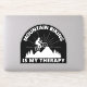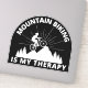 This sticker is perfect for a mountain biking enthusiast. The design is all white on a black background.