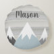 Mountain Blanket with Name Wooden Adventure Round Cushion