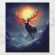 Simple grey mountains with ball of fire representing the disaster this giant buck is running from.