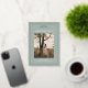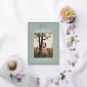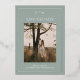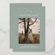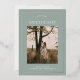 Save the date card with one photo, a double line frame and an outline mountain drawing in foil.