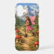 This whimsical illustration features a pink winged fairy hiking a trail surrounded by red toadstool mushrooms, pines and towering mountains. The storybook-style art captures a love for nature, adventure, and magical daydreams. This cute phone case is perfect for those who love fairycore style, cottagecore art, and fairytale designs that feel nostalgic and magical. | This design is available for many Samsung and iphone devices. Choose your cell phone model from the Device Type dropdown menu above.