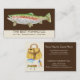 Mountain Fishing Guide Lake Charter Boat Brown Tan Business Card design. Mountain lodge color palette is rustic yet classic that handsomely sets off the hand painted watercolor rainbow trout, vintage fishing creel basket and retro lures. For rustic outdoors wilderness, mountain lake or stream fishing businesses such as guide services, bait and tackle shops and boat rental services. This artwork was created by internationally licensed artist and product designer, Audrey Jeanne Roberts, copyright.