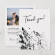 Send these mountain forest-themed Thank you cards to thank your guest for being part of your special day. The front of the card presents a hand-drawn black-and-white sketch of a mountain pines forest, complemented with the customisable caption "Thank you!" in black calligraphy font. The back is customisable with one of your favourite wedding pictures, your personal message to your family and friends, and your names.
