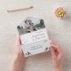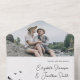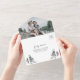 This elegant and contemporary all-in-one wedding invitation, with an easy-to-tear-off perforated RSVP postcard included, features a modern hand-drawn sketch of a lovely mountain tree forest landscape and is customisable with one of your favourite engagement pictures.
