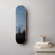 A modern image of a mountain and forest with a blue gradient is featured on this unique skateboard deck.