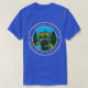 I give wanted to give this a 4 instead of a 5 because these Basic DARK T0shirts run unexpectedly SLIM or Narrow. Which is great if you do not have a potbelly, but I have a paunch. It isn't the shirt's fault that I've got a beer belly. The design and shirt itself is a quality cotton shirt. The color is more of a deep purple, but still a very pretty color. The Basic DARK T-shirts run a bit SLIMMER than the Basic Ts. The neck is a fraction narrower (or seems to be narrower) also. I'm a paunchy middle-aged woman and my neck is 12 inches (31cm) thick and the neckline fell about the same as in the photo of the man, and I had the desire to tug it a bit. So if you're a thick necked man or like loose shirts, be aware these are slimmer shirts. Once I get rid of my lockdown paunch it'll look great. The shirt washed well in cold water with no apparent bleeding. We don't have a dryer, so it hung dry. Did not shrink. Love the colors and the design. The design looks smaller on my shirt than it does on the model on-line. But still, it looks good on the shirt. The printing looks as it does on the model, just the size seems fractionally smaller. Washed garment in cold water, hung dry and design appeared unaffected.