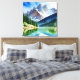 Step into the beauty of nature with our stunning mountain lake art print on canvas. This piece features a breathtaking landscape filled with lush green trees, towering snow-capped peaks, and a tranquil lake reflecting the surrounding scenery.