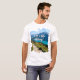 This design features a stunning lake in rugged mountains with the phrase "Let's Go Hiking!"