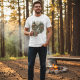Unleash your wild side with this exquisite t-shirt, adorned with a captivating graphic of a mystical forest under the silvery gaze of the full moon. Witness nature’s majesty, featuring towering trees, majestic mountains, and a flowing river, all rendered in intricate detail. This piece isn’t just clothing - it’s wearable art that tells a story of mystery and wilderness.