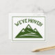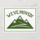 Mountain logo custom new address moving Announcement Postcard. Custom change of address postcards. Vintage cards with green mountain peak view. Custom move text; We have moved! I've moved or We've moved! Add your new address of your house on the back. Cute moving cards for new home, housewarming party or new business location. Great for home, shop, business, store, company in mountain areas. Perfect for Montana, Colorado, California and other places.