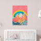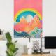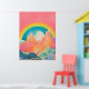 The mountains stand tall and majestic, their peaks kissed by the sun. The rainbow arches gracefully across the sky, adding a magical touch to the landscape. This artwork invites viewers to escape into a world of colour and serenity, perfect for brightening up any space.