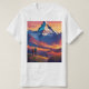 A striking image of the Matterhorn, one of the most iconic and majestic mountains in the Swiss Alps. The mountain's sharp, pyramid-like peak is prominently displayed, piercing a clear, azure sky. Snow-capped and bathed in golden sunlight, the Matterhorn exudes an aura of timeless grandeur and adventure. Below the peak, rugged cliffs and ridges descend into a lush alpine meadow, dotted with wildflowers and framed by evergreen trees.