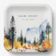 Mountain River Fall Winter Landscape Wedding Paper Plate