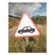 An old unofficial warning sign showing no vehicular access along this narrow and rough mountain road.