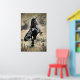 Beautiful Friesian horse in a mountain rock landscape. Stars guide him and he enjoys his freedom and adventure!