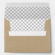 Rustic textured envelopes are printed with a brown kraft pattern and open to reveal a geometric lattice pattern. Personalise the back flap with your return address, topped by a sketched illustration of mountain peaks and pine trees Designed to coordinate with our Mountain Sketch wedding and event invitation collection.