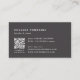 Rustic elegant business card design features a sketched illustration of mountain peaks, pine trees and a flowing river, with two lines of custom text for your business name and/or your name and business description. Add your full contact information to the reverse side in white on rustic, dusty grey-brown, along with a customisable QR code.