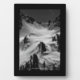 A black and white photograph of a trail that was left in the snow going up a mountain. With patches of trees and stone exposed, shadows are cast upon the snow that is covering the Tatoosh mountain range. Image Copyright ©2023 Kimberly J Tilley. zazzle.com/store/developingnature