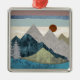 Modern landscape with unique colours and patterns showing a mountain landscape with a striped skyline.