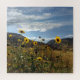 This fun jigsaw puzzle features a beautiful photo of wild sunflowers with blue sky above and rolling hills in the distance. Photo taken outside of Morrison, Colorado.