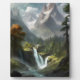 Mountain Waterfall Serenity - Nature Landscape Art Plaque