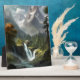 Experience the tranquil beauty of nature with this AI-generated landscape artwork tabletop plaque with easel art print showcasing a majestic mountain range, crystal-clear waterfalls, and lush, vibrant forests. The towering snow-capped peaks loom in the distance, while the gentle waterfalls cascade into a serene river that winds through the valley. The soft light and vibrant colours create a calming atmosphere, perfect for nature lovers and those seeking a peaceful ambiance in their home decor. This artwork's impressive attention to detail, from the delicate texture of the trees to the smooth flow of water, makes it a standout piece for anyone looking to bring the outdoors inside. The scene evokes a sense of serenity, transporting viewers to a remote mountain retreat where the natural world reigns supreme. It's ideal for adding a touch of wilderness to your living room, office, or bedroom.