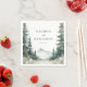 This is a watercolor style image featuring a serene mountain landscape surrounded by lush green trees and delicate wildflowers. The soft pastel colours create a tranquil and romantic atmosphere, perfect for celebrating love in nature's embrace. Ideal for wedding invitations or announcements, it evokes feelings of peace and natural beauty.