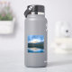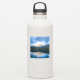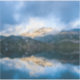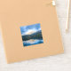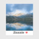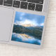 Contour sticker with a beautiful nature photo. Mountains in the background with a calm still lake in the foreground. Serene and relaxing photograph.