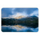 A flexible magnet with a beautiful nature photo. Mountains in the background with a calm still lake in the foreground. Serene and relaxing photograph.