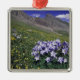 Mountains and wildflowers in alpine meadow, Blue Metal Tree Decoration