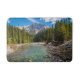 This amazing Getty Images photo features th Rocky Mountain as it looms behind a tree lined crystal clear Spray River.