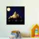 Nighttime foil print featuring tall mountains and pine trees, by moonlight. The gold accents against the deep blue of the mountains has a cool relaxing feeling great for any room of the house or office.